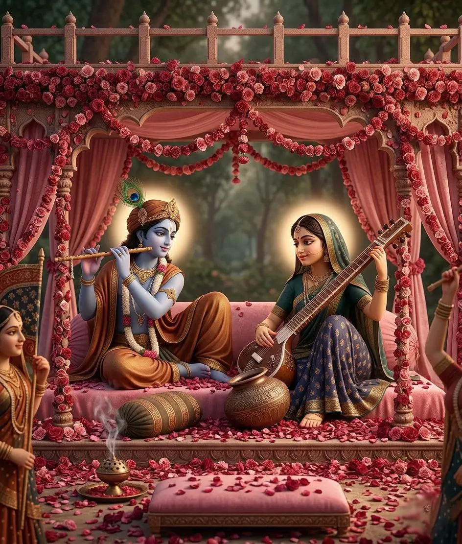 पुष्टिमार्ग में आज की सेवा श्री स्वामिनीजी की ओर से होती है | अतः प्रभु को आज छापा के खुलेबंद के वस्त्र, श्रीमस्तक पर छापा की कुल्हे एवं मोरपंख की जोड़ धराये जाते हैं | आज प्रभु के सन्मुख नव वर्ष का पंचाग वाचन होता है | न्योछावर की जाती है | आज प्रभु राजभोग से फूल मंडली मे बिराजेंगे |